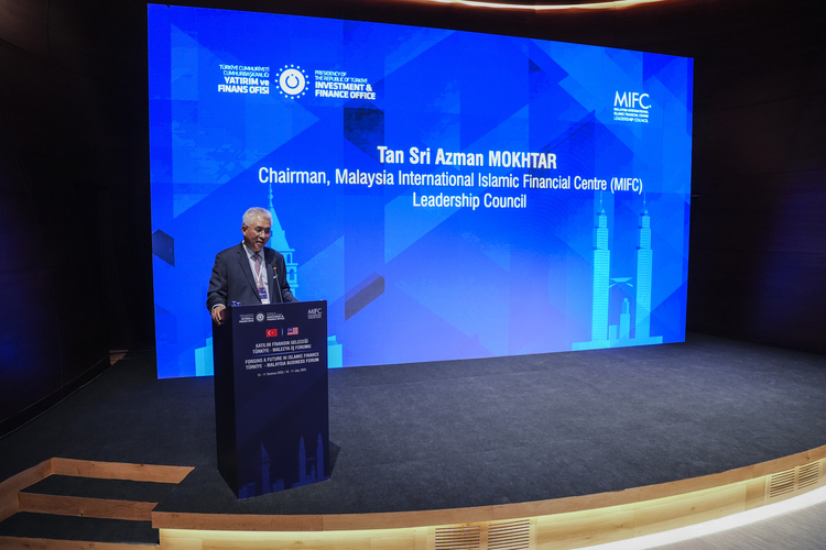 Cumhurbaşkanlığı Yatırım ve Finans Ofisi ile Malezya Uluslararası İslami Finans Merkezi Liderlik Konseyi iş birliğinde düzenlenen “Katılım Finansın Geleceği Türkiye-Malezya İş Forumu” programı İstanbul Finans Merkezi Ziraat Bankası Oditoryumu’nda başladı. Malezya Uluslararası İslami Finans Merkezi Liderlik Konseyi Başkanı Tan Sri Azman Mokhtar, programa katılarak konuşma yaptı. ( Ağıt Erdi Ulukaya – Anadolu Ajansı )
