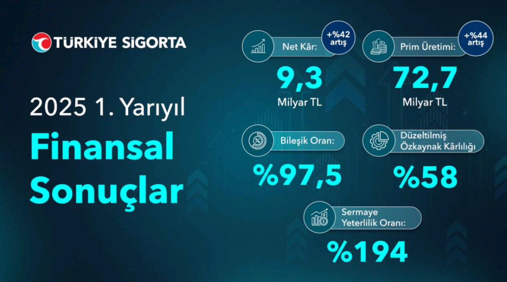 Türkiye Sigorta, sürdürülebilir büyüme ve kârlılığını yılın ilk yarısında da devam ettirerek, geçen yılın aynı dönemine göre %42 artışla 9,33 milyar TL net kâr açıklarken; prim üretiminde de %44 artışla 72,7 milyar TL’ye ulaştı. Türkiye Hayat Emeklilik ise ilk 6 ayda, geçen yılın aynı dönemine göre %45 artışla 352 milyar TL BES fon büyüklüğüne, 5 milyon katılımcı sayısına ve %55 artışla 7,22 milyar TL kârlılığa erişti. Türkiye Sigorta ve Türkiye Hayat Emeklilik aynı zamanda, kuruluşlarından bu yana kendi rekorlarını da kırarak; geçen yılın aynı dönemine göre %48 büyümeyle, iki şirkette toplam 16,6 milyar TL net kâr elde etti.